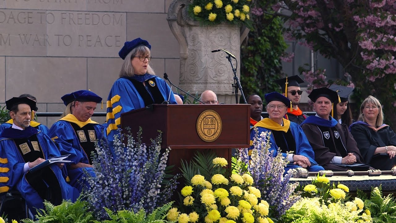 Donna Strickland '89 (PhD) returned to the University 30 years after completing her PhD to deliver the commencement address for the College of Arts, Sciences, & Engineering. It was that PhD work with her graduate advisor Gérard Mourou on chirped-pulse amplification of lasers that led to them being awarded the Nobel Prize in Physics in 2018.