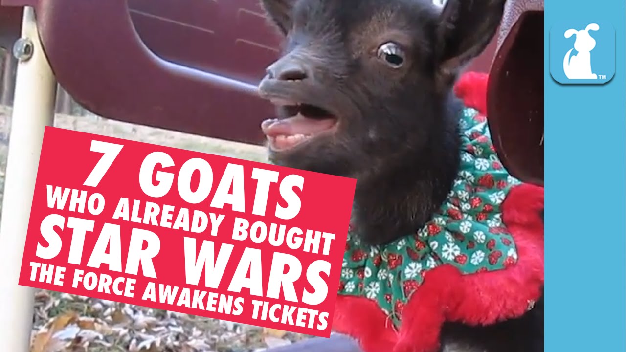 Star Wars The Force Awakens tickets are going fast, and that's because goats are all super fan boys of Star Wars, have high hopes for J.J. Abrams, and want to see Harrison Ford as Han Solo while they eat their popcorn. Goats are also huge Jar Jar Binks apologists, but that's because they liked his dreads.