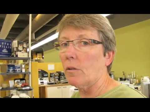 Gail shows us the quantity of ground coffee she suggests for a double shot of espresso.