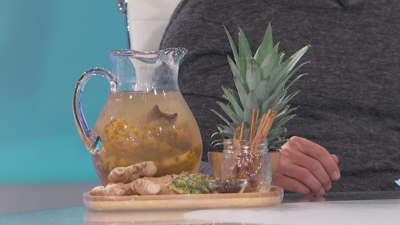 The Doctors share the possible therapeutic benefits to drinking tea made from the skin of pineapples, which contains the enzyme bromelain which is to be a digestive aid, along with having anti-inflammatory and anti-bruising properties.