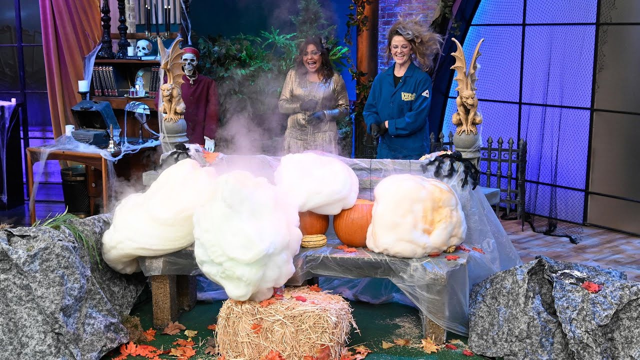 Kate the Chemist and Rach create a spooky foaming pumpkin patch and make color-changing magic in a fish tank with dry ice.