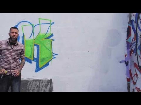 Watch more How to Draw Graffiti videos: http://www.howcast.com/videos/495521-How-to-Draw-an-L-GraffitiLearn how to draw the letter K in graffiti from graffiti artist Paes 164 in this Howcast video.My name is Paes164 and I'm a professional artist. I've been painting since a teenager, and I've been doing it for 20 years now. Find me at Paes164.com (p-a-e-s-164.com) My Facebook is facebook.com/paes_art. Lets start off with the letter K, do a throw up and here we go. Start off with a straight line, work our way up, over, and then kinda give it a little kick. Booyah. A throw-up. Followed by 3D, with a little bit of fill. And our letter k, bubble letter, is definitely rocked out. You can also take some of the inner gels and outer gels tips with the blockbusters and wild styles and apply them to letters like this but again, y'know this type of graffiti is just really based off getting up on the street and getting your name as big as possible and fast and doing it non-stop. How about a blockbuster letter K? Just like any other letter, keeping the frame of the letter in a box shape so that it can just follow in suit with all the rest. Get your outline done using the same color. Come and fill. Again, you gotta fat cap? You'll cut your time in half. Move on with the outline, followed by 3D, and an inner outline. K's a good letter to play with so we're gonna go ahead and do the wild style. Get a little creative with it. Got that fill done. Do a little bit of a design inside. Once again, I'm just kinda coming through, doing some short fades where you just kinda, gently press on the tip and whip the paint out. As it's on the wall, whip it back. Very simple can control. Just keep in mind that the fill you do and the colors that you use in it don't clash with your outline. Keep them all bright or if the outline is going to be bright, keep them all dark. Come through and outline the piece. Nice clean outline. And again, your 3D can go any direction you want it to just make sure its continuous throughout the piece. Got our 3D done. Follow through with a inner outline. Inner outline just being, known as the inner outer gels of the piece, and definitely what gives it that graffiti look.And finally, our outer outline. Once again, when doing your outer outline, if you're doing a complete piece. This outer outline goes around the outside of the piece. Oh, and there you go. The letter K, little bit spicy.