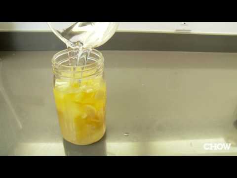 Making liquors at home is fun, and tasty, and it's easy. Take Limoncello, the Italian lemon liquor. To make it, take the peels of seven lemons and add them to a sturdy glass container that has a good lid. To those lemons you add two cups of grain alcohol or high proof Vodka. Stir it a little bit. Put the cap on. Put it in a cool dry place, away from the sun, and let it sit for two weeks. After two weeks add an ounce and a half of simple syrup, another quick stir, put it back in that cool dry place for two more weeks, stopping by every couple of days to give it a little swirl. Then you strain it out and then you're ready to drink it. It's a beautiful golden color and you can have it by itself chilled or mix it up into cocktails.