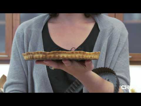 If you've ever struggled to remove a tart from a removable bottom tart pan and ended up with a ring on your arm and the tart nearly falling on the floor, I have the perfect tip for you. Grab a can, set the tart pan on top and let the ring fall away. And you can easily transfer the tart to a serving platter without risking dropping it on the ground.