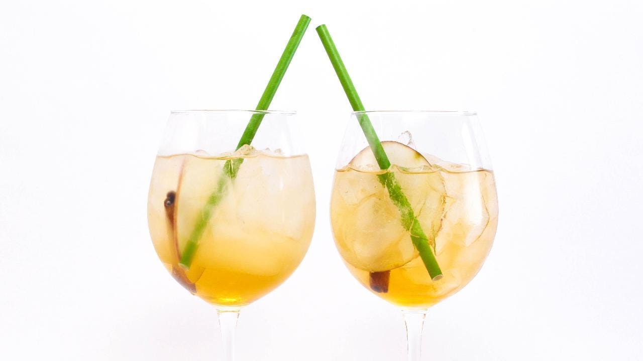 "Instead of sugar, we're going to use an apple liqueur," John says of his twist on the classic Champagne cocktail.