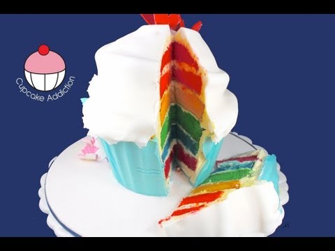 Rainbow Layer Cakes are so hot right now, so we bring you a Rainbow Layer Giant Cupcake! SUBSCRIBE to MyCupcakeAddiction for all things Rainbow and Cupcake!
