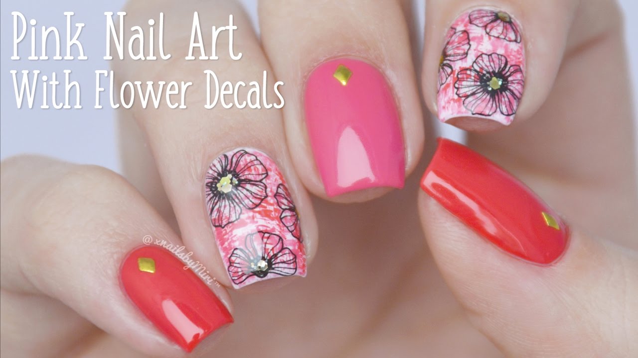 Pink/red nail art with decal stickers ↓ All product info down below! ↓