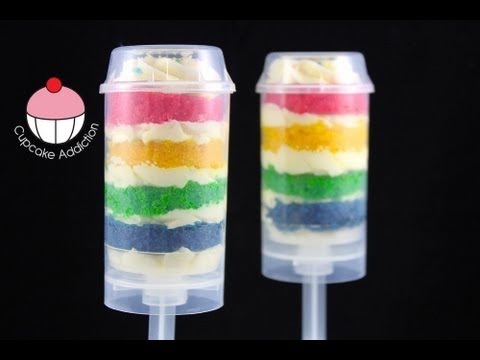 Rainbow Cake Push Up Pops - If you haven't heard of Push Pops - you're about to find out how easy and versatile they are to make. Using cupcakes&frosting you can make these great, rainbow cakes where the inside becomes the decoration!